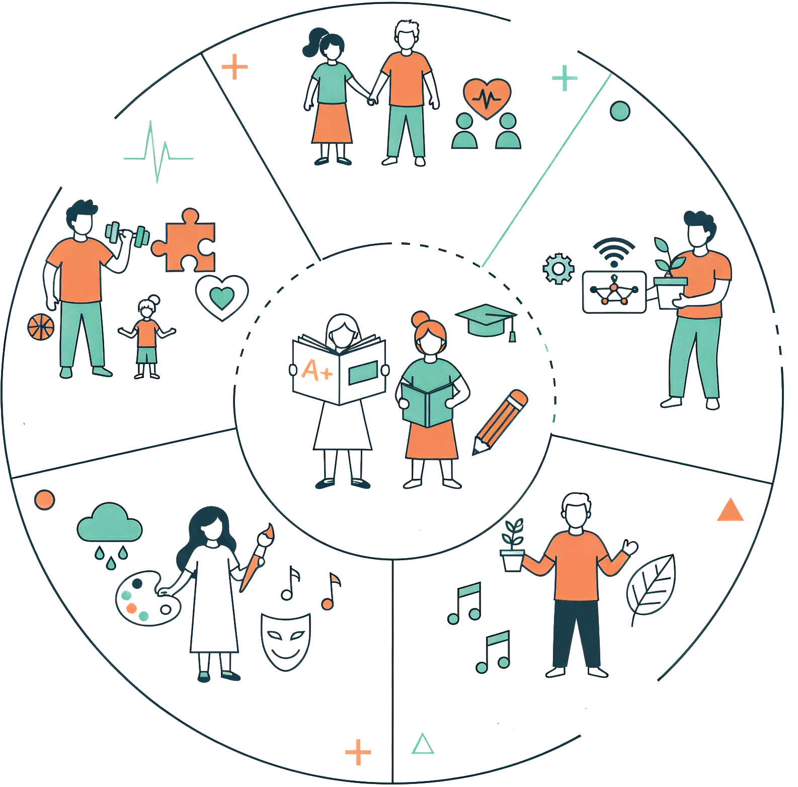 Dezvoltarea competențelor și cunoștințelor pentru toate categoriile de vârstă prin proiecte educaționale formale și non-formale, cursuri, campanii de informare și activități de formare profesională.